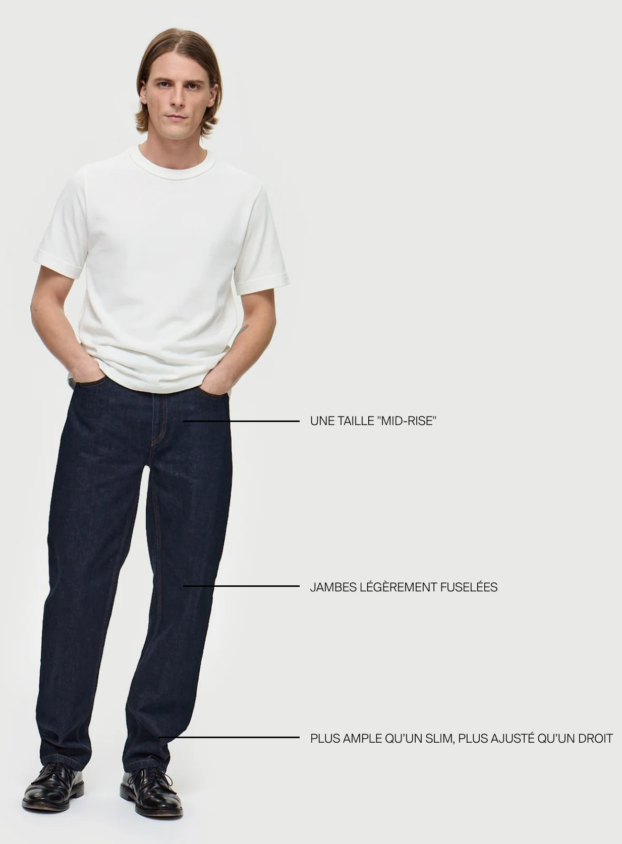 Notre coupe droite ? L'imparable. De la taille aux chevilles, une ligne pure et maîtrisée qui ne fait jamais fausse route. Démocratique dans son approche - elle sublime toutes les morphologies - cette coupe regular est votre meilleur allié vestimentaire.