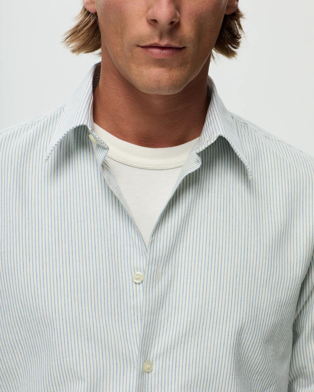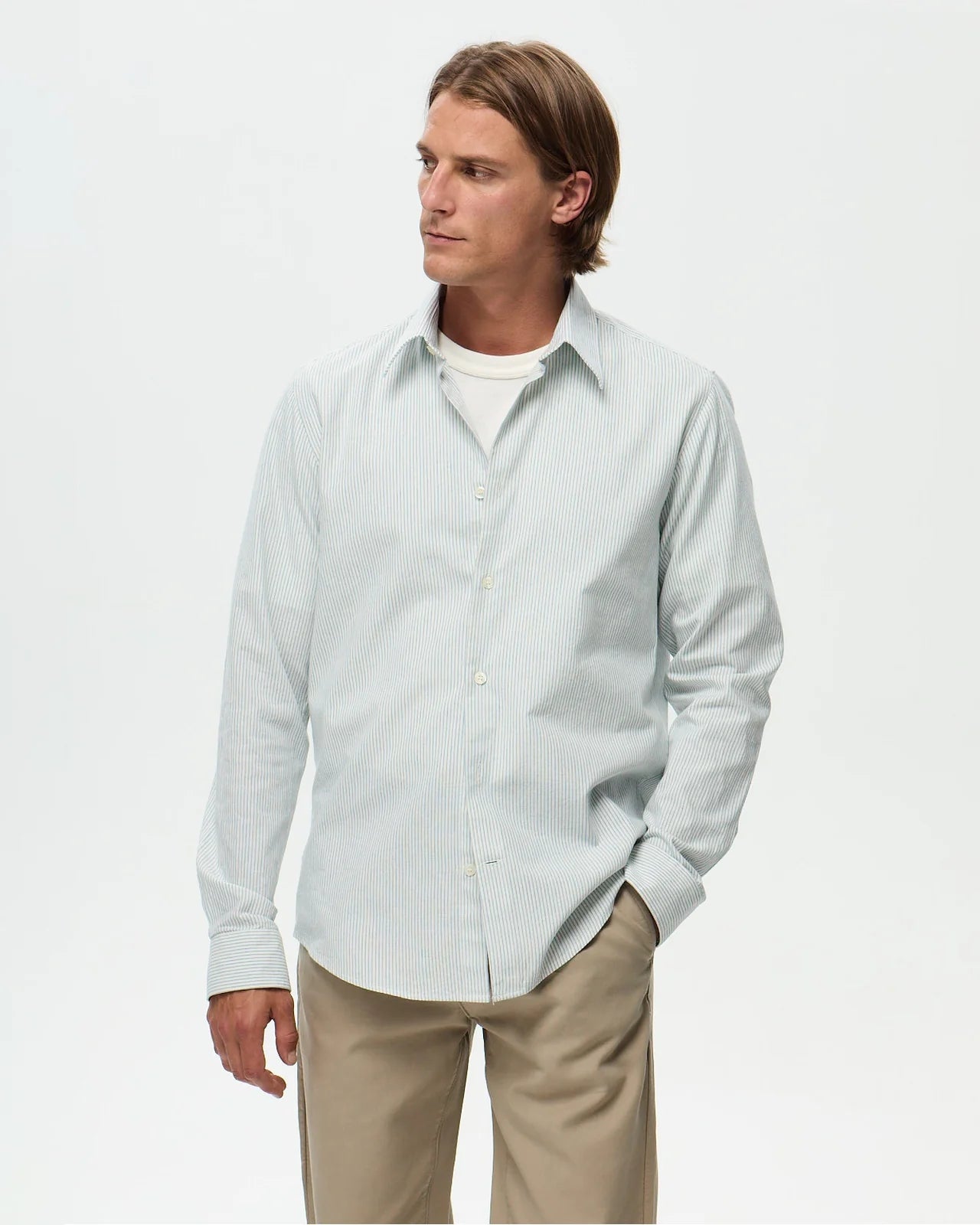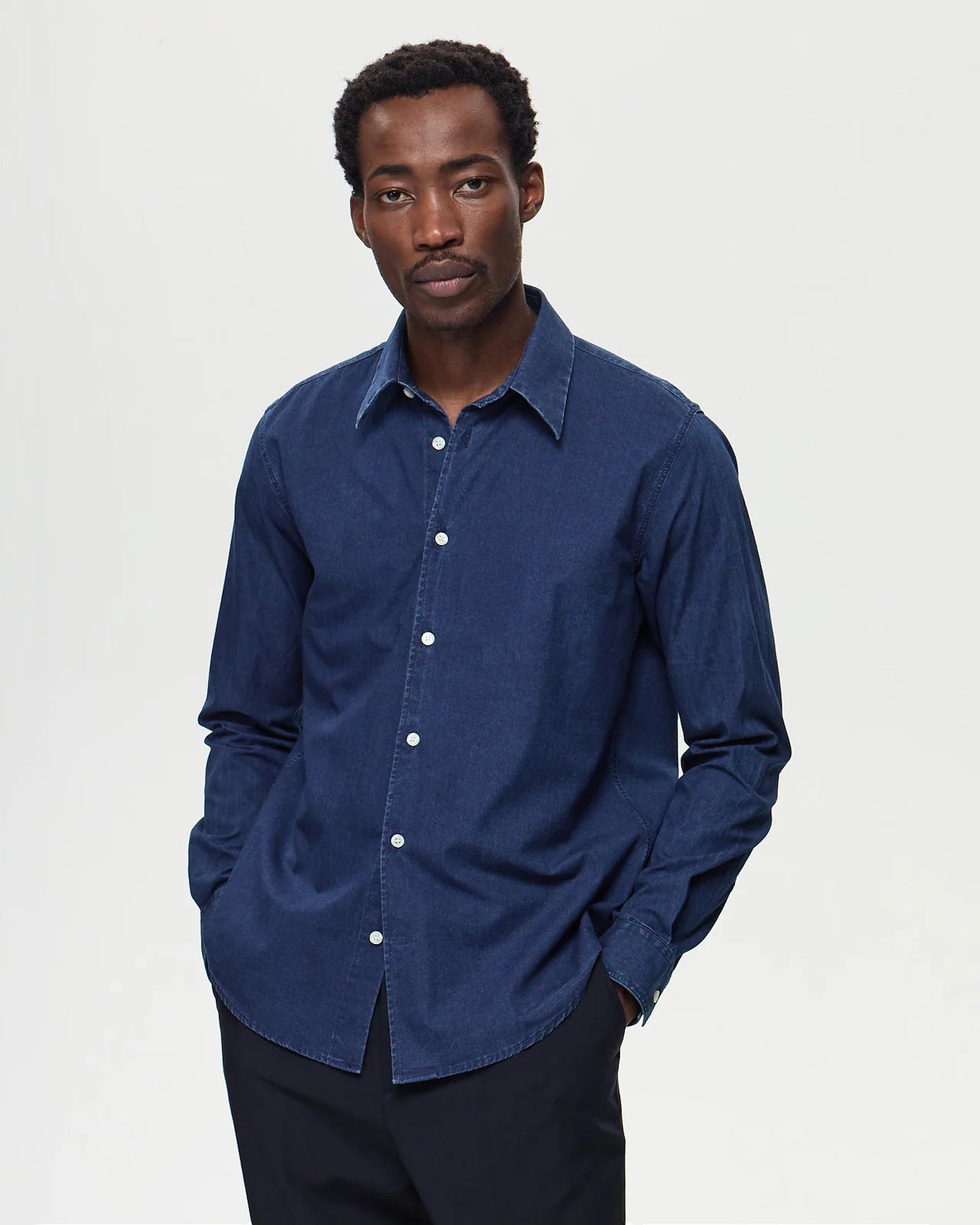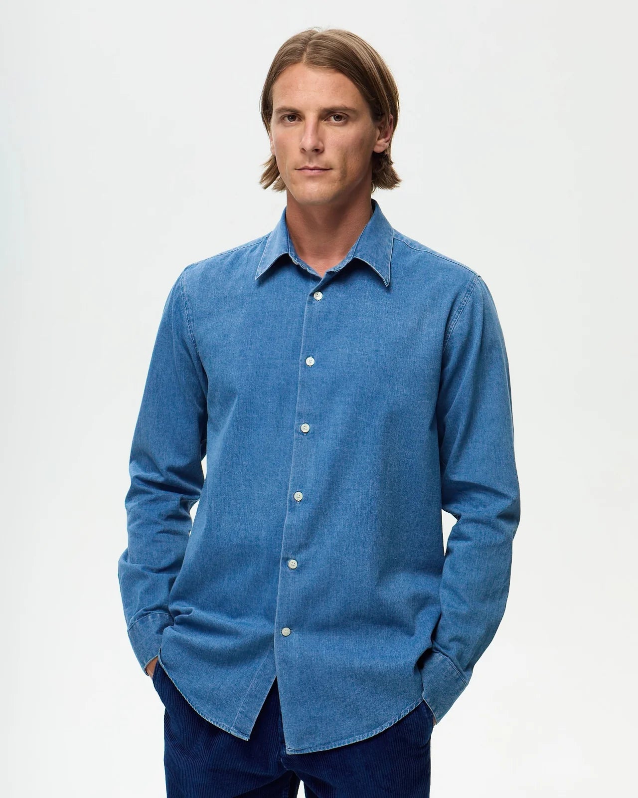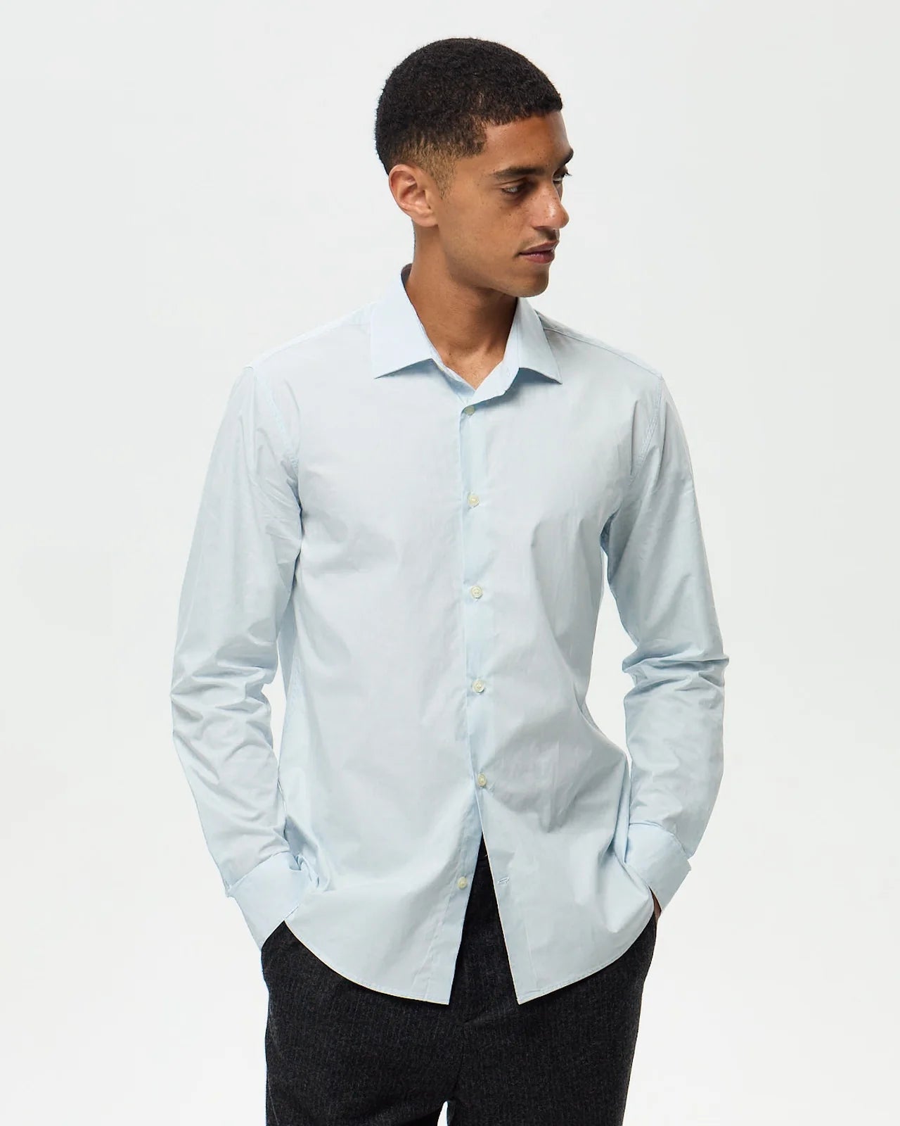 Le tombé d'une chemise révèle tout de sa coupe. Une question de millimètres qui fait la différence entre une pièce quelconque et une chemise qui structure la silhouette. Coupe droite pour un tombé fluide et naturel, semi-ajustée pour un tombé plus sculpté : maîtriser l'art du bien porter.