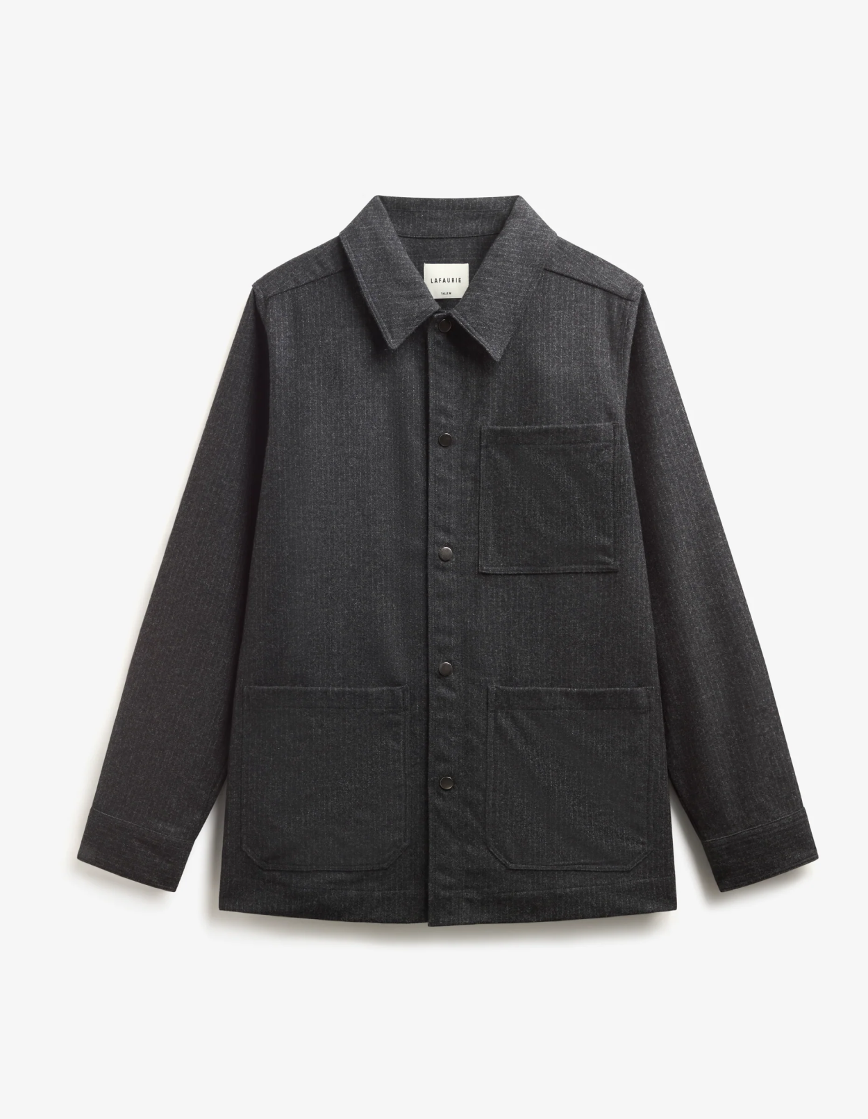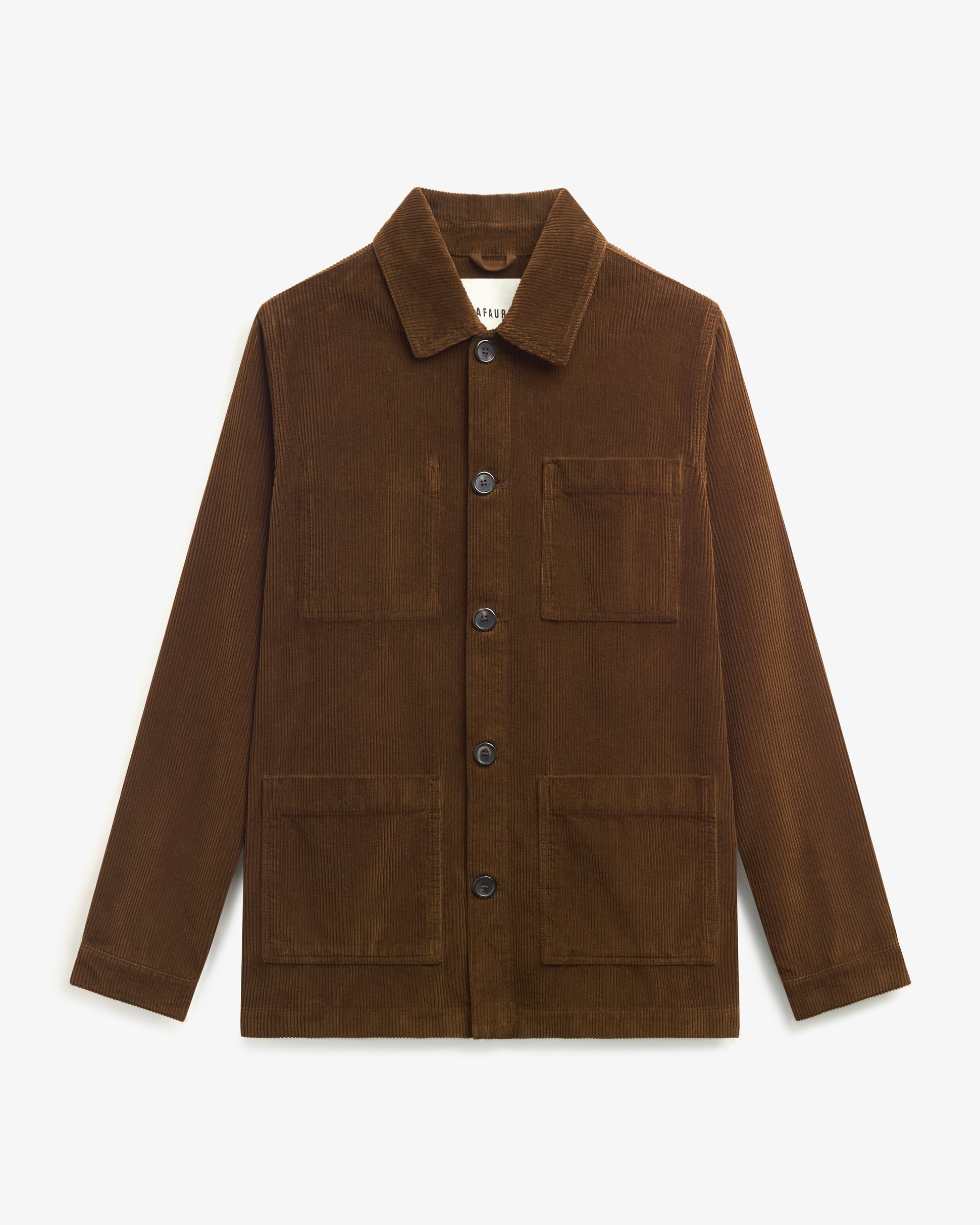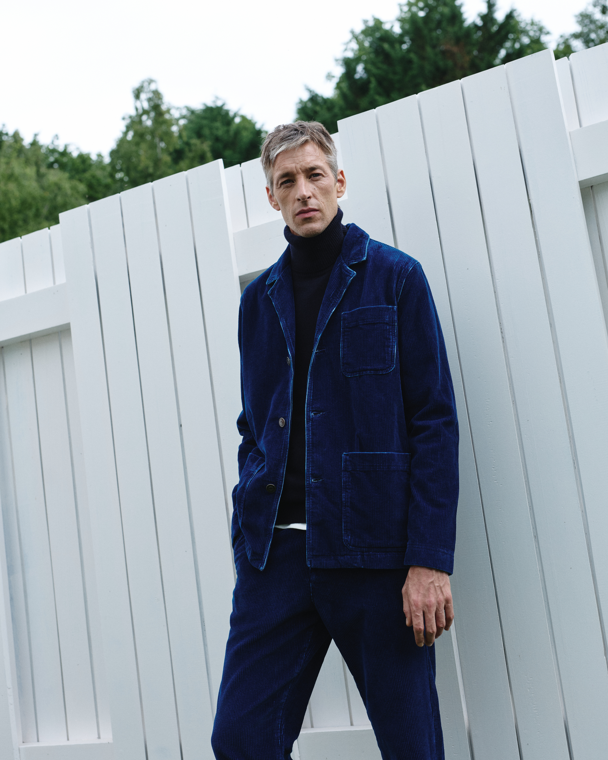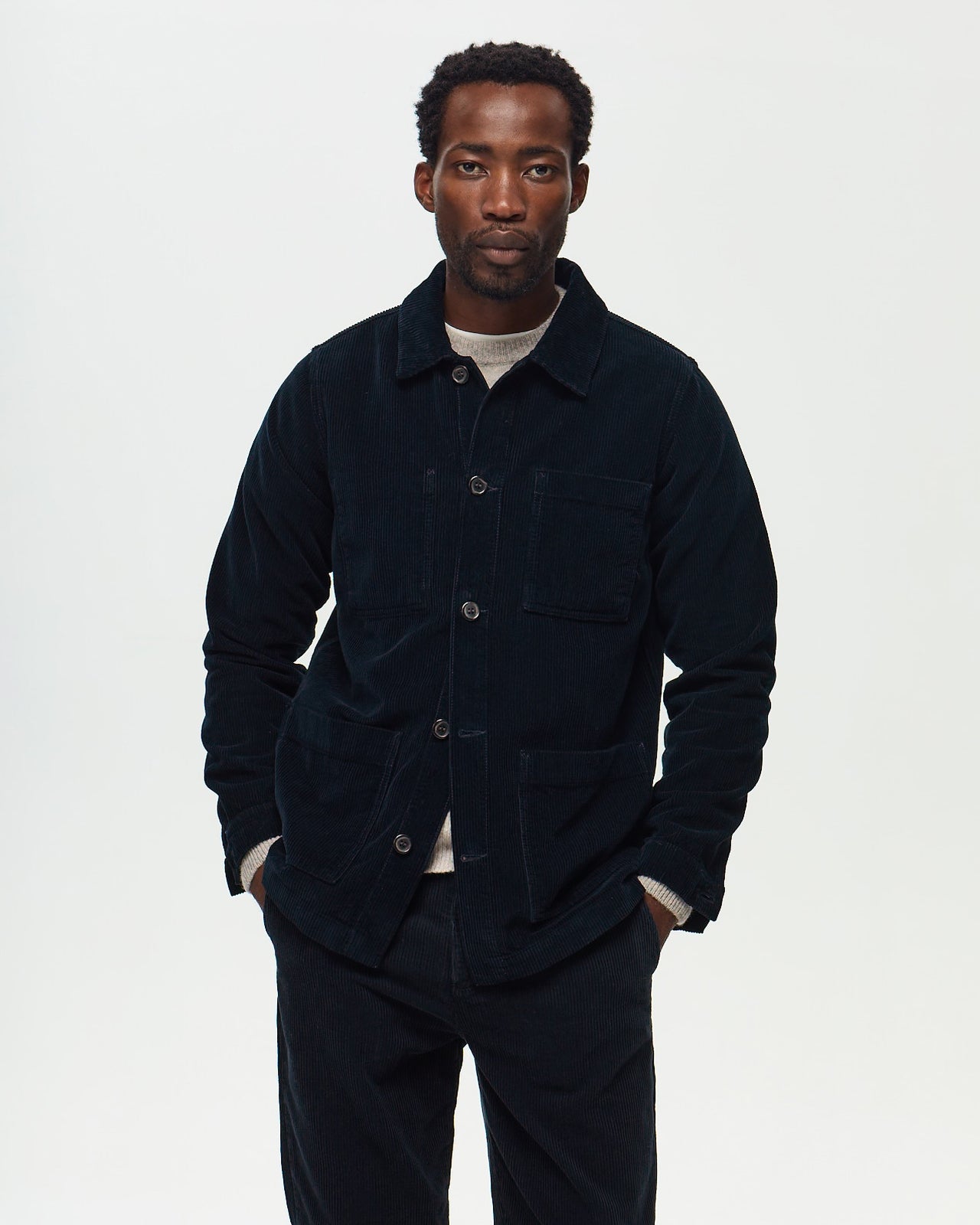 Deuxième tableau : l'accord workwear. La veste Delaunay s'associe naturellement au chino gabin workwear. La clé ? Un jeu de volumes maîtrisé, unifié par la cohérence des matières. Glissez un t-shirt Darcy entre les deux - cette pièce apporte la fraîcheur nécessaire à l'ensemble.
