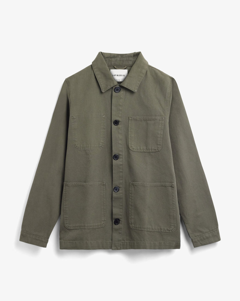 Saison après saison, Lafaurie insuffle un nouveau souffle à sa veste de peintre iconique. Pour cette collection de printemps, elle revient avec une touche inédite — confectionnée en denim avec des délavages contrastés de chaque côté, et ornée de boutons volontairement dépareillés.